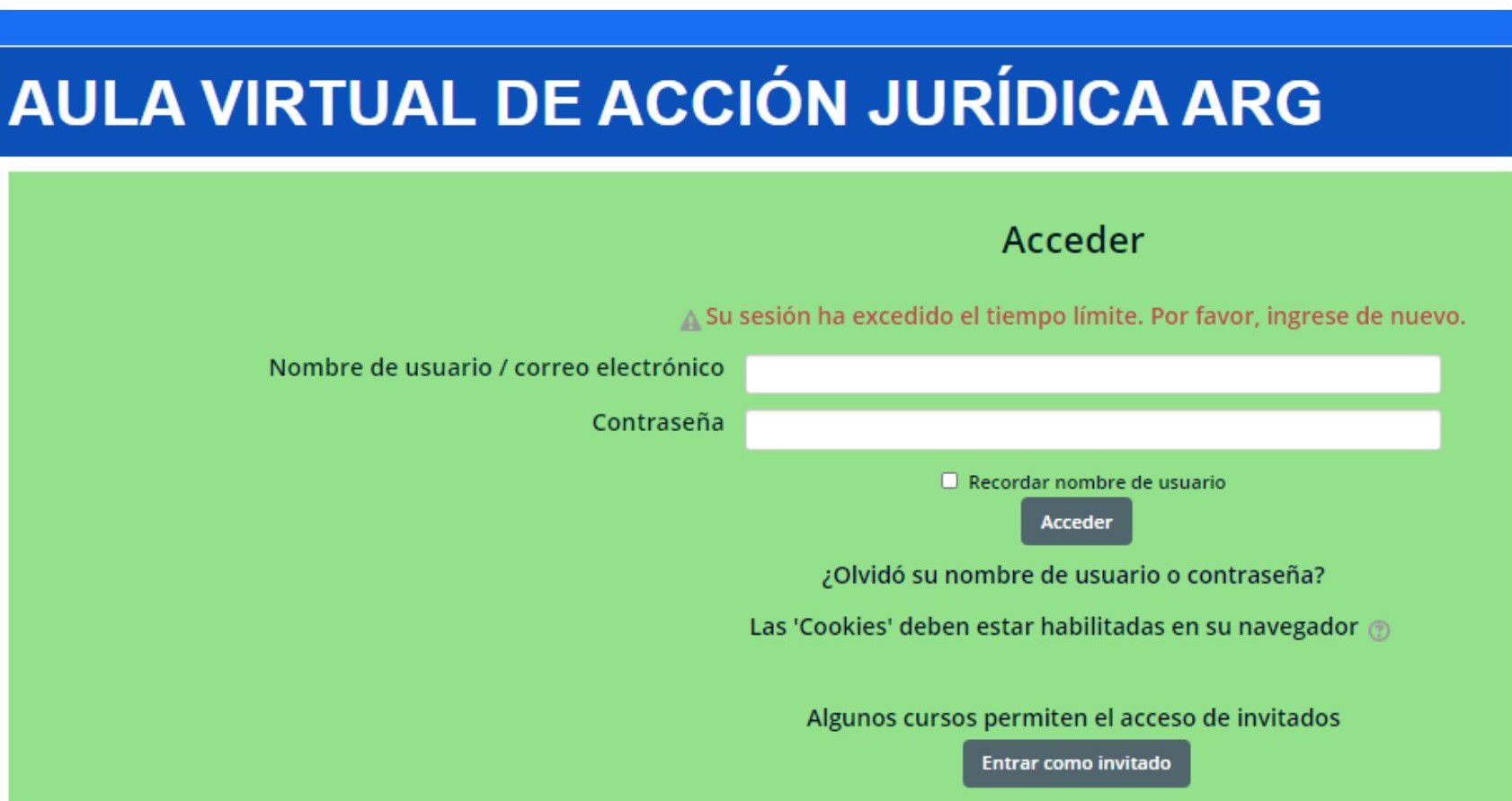 Le legará un e-mail a su correo con los datos de acceso al aula virtual de ACCIÓN JURÍDICA, el que contiene nombre de usuario personal y una clave temporal, la que deberá modificar en el primer ingreso por requerimiento de la plataforma virtual.