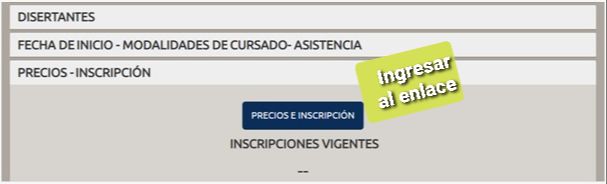 Para consultar por precios - beneficios - inscripción: en la pestaña cursados, dispone una pestaña de PRECIOS - INSCRIPCIÓN (deberá hacer click allí)